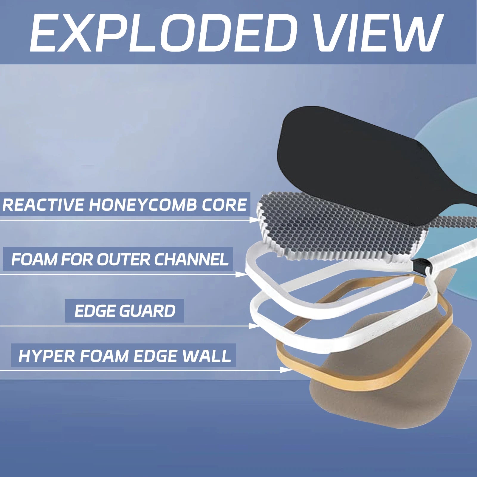 Specialized foam injected into the perimeter of the paddle adding weight and stability, increasing the sweet spot for consistent edge to edge performance